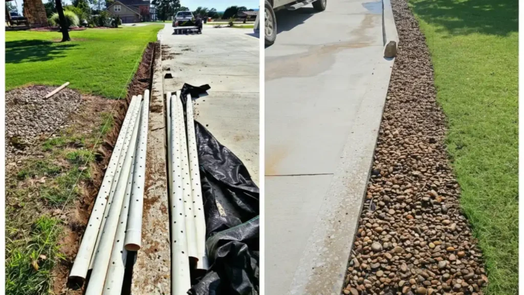 - Water Diversion: We install custom French drains that catch underground water and move it safely to a drain point.